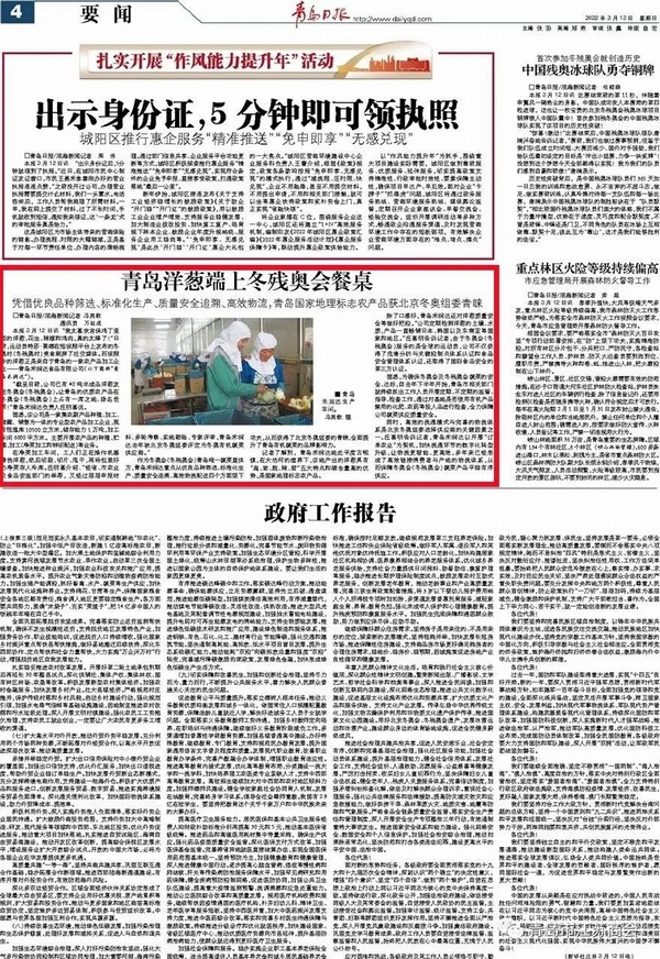 3月13日,《青島日報》報道了洋蔥生產(chǎn)加工企業(yè)——青島禾潤達(dá)食品有限公司,積極在優(yōu)良品種篩選、標(biāo)準(zhǔn)化生產(chǎn)、質(zhì)量安全追溯、高效物流配送四個方面狠下功夫,從而獲得北京冬奧組委的青睞,提升了平度有機(jī)蔬菜的品牌影響力。